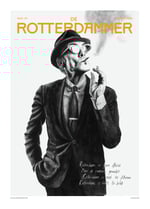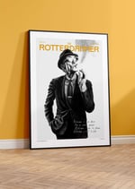 "A tribute to one of the most iconic Rotterdammers: Jules Deelder. Poet, writer and performer, he was known for his raw style, love for jazz and distinctive appearance: black suit, iconic glasses, and slicked-back hair. He was called ‘the night mayor of Rotterdam’ and he possessed an unmistakable Rotterdam accent. He passed away in 2019 but his poems can still be found on several buildings throughout the city. He wrote about city life, death, drugs, and music in blunt language, reflecting the tough, no-nonsense spirit of Rotterdam.