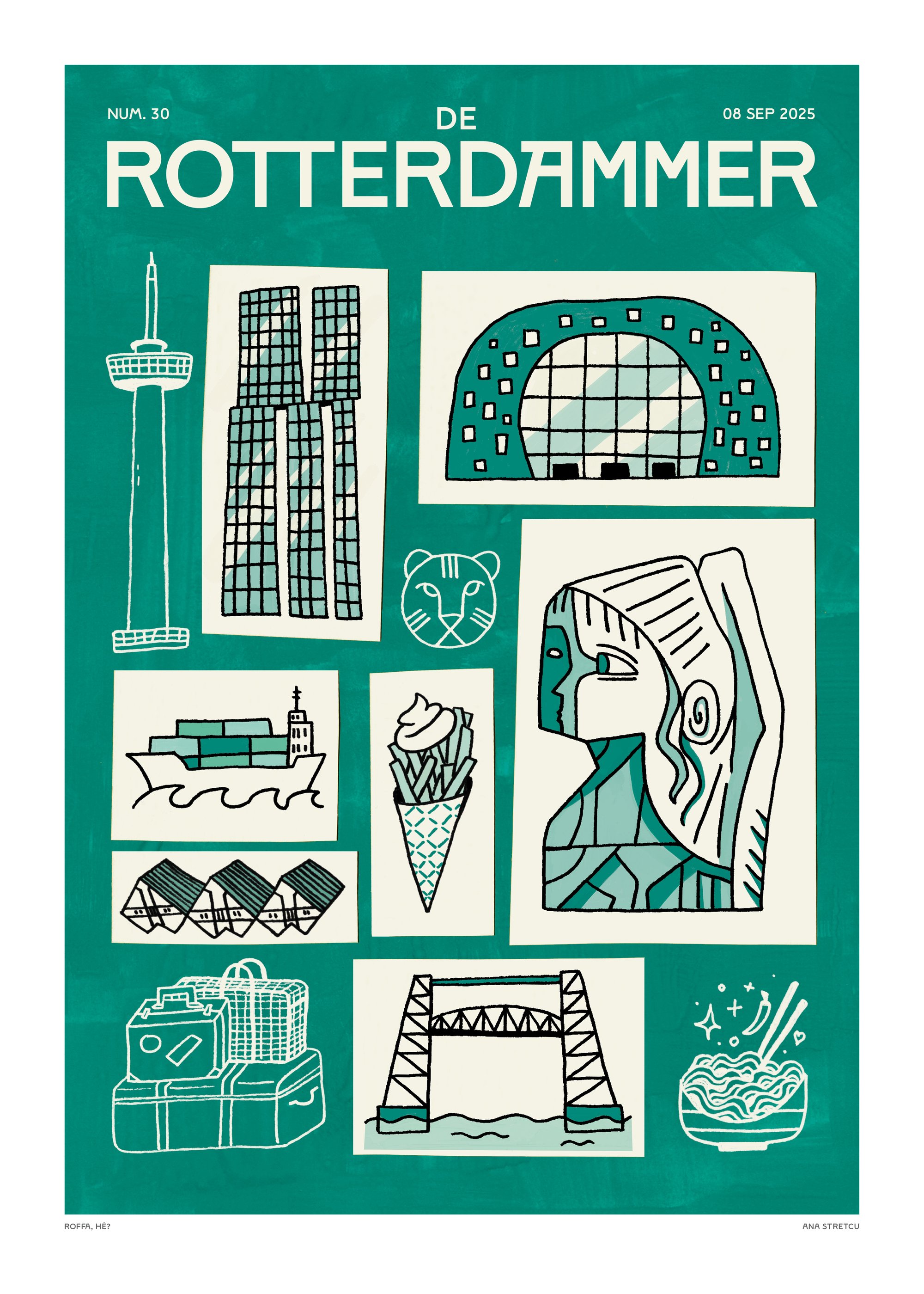 "I always have a hard time describing Rotterdam to people who've never been here because it contains such multitudes. So I couldn't pick a single subject to have on the cover because for me it's everything together that makes the city what it is. It's the Bram Ladage fries, but also bami goreng. It's the modern buildings, but also the bridge that wouldn't be dismantled to make room for a billionaire's yacht. It's Dutch to its core in some ways, but it's also full of the unique stories of people who came here from all over the world to make this place their home. It's Rotterdam hè?“